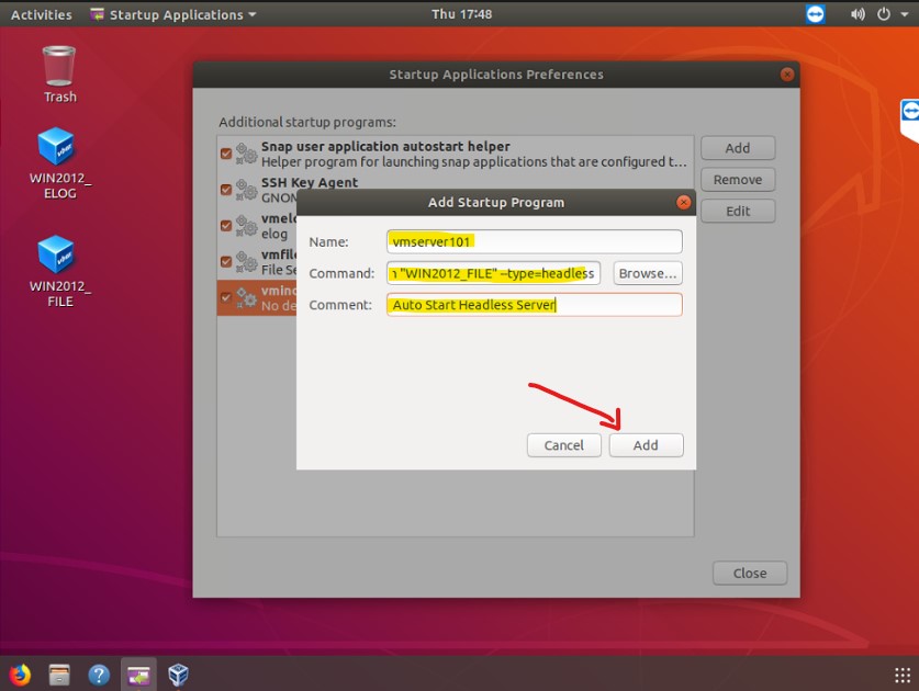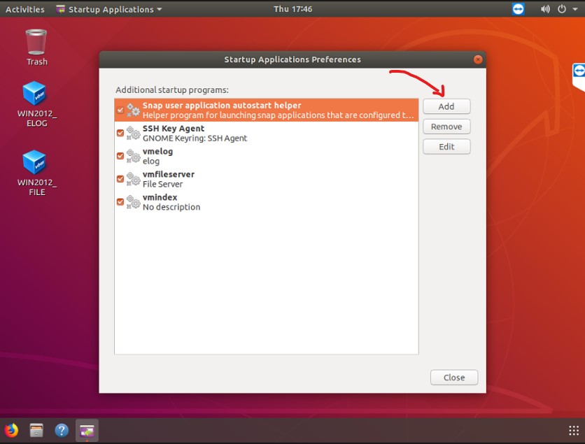 - Click “Add” Button to add new startup program